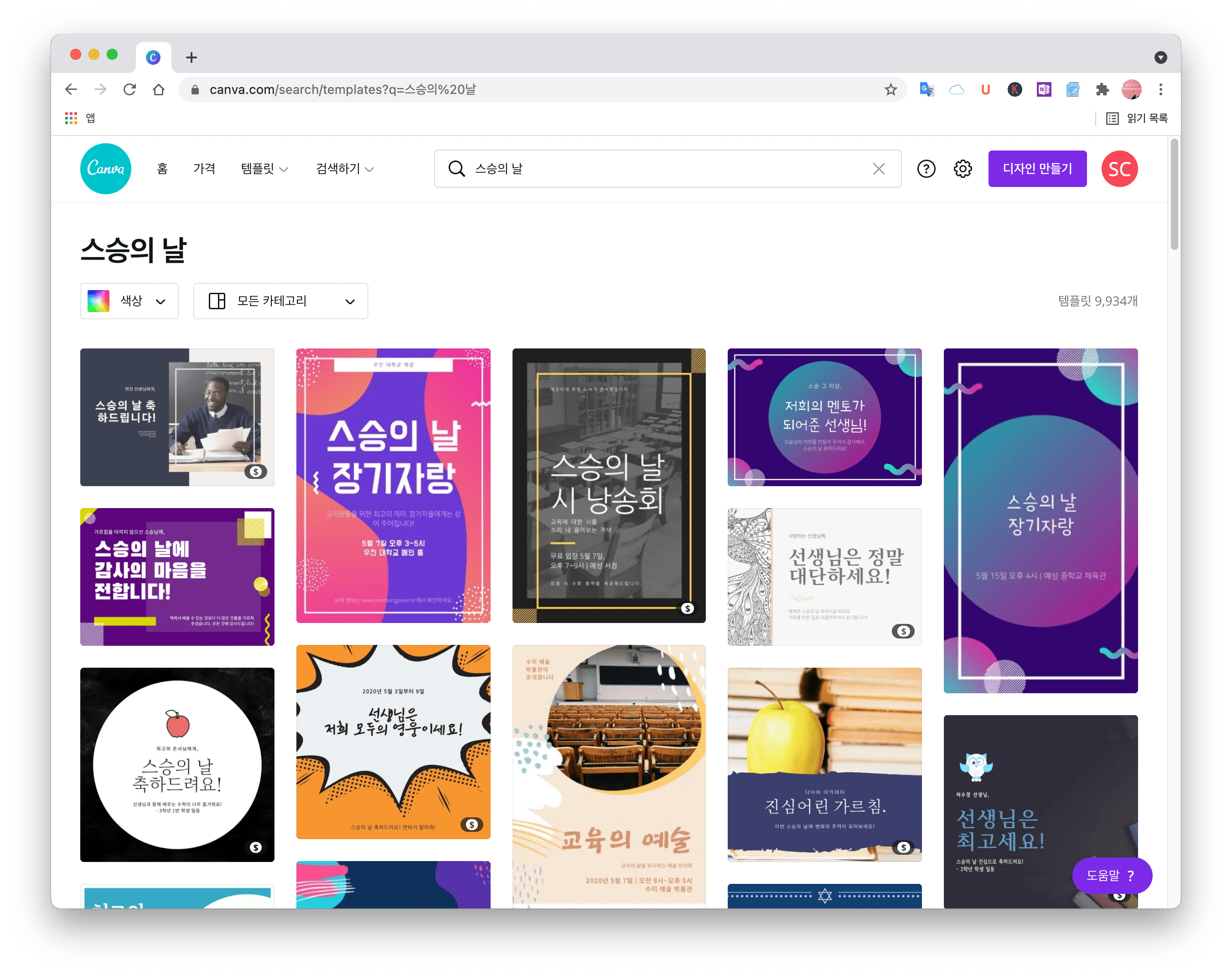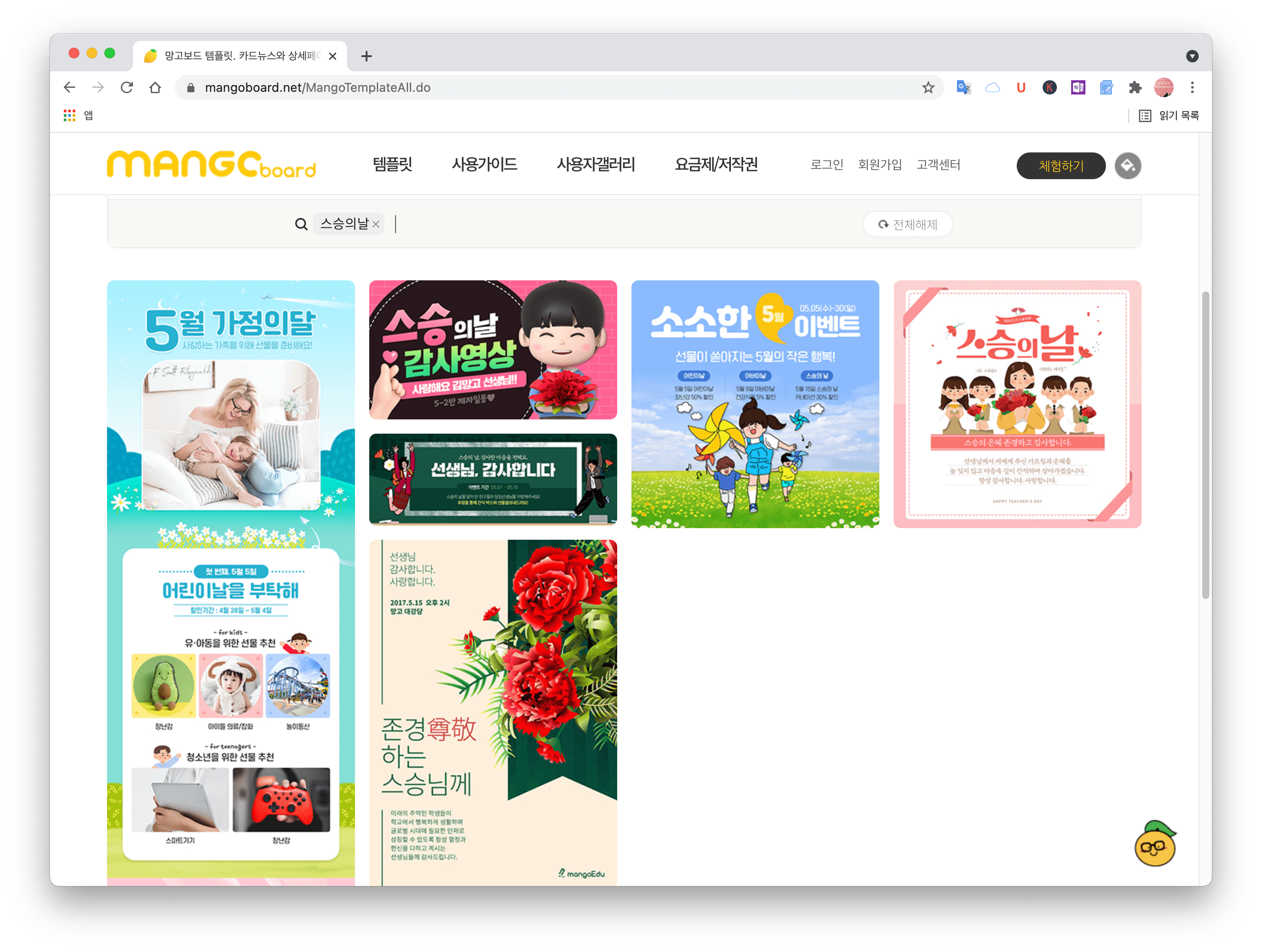 '스승의 날' 검색으로 6가지 탬플릿이 나열됩니다.